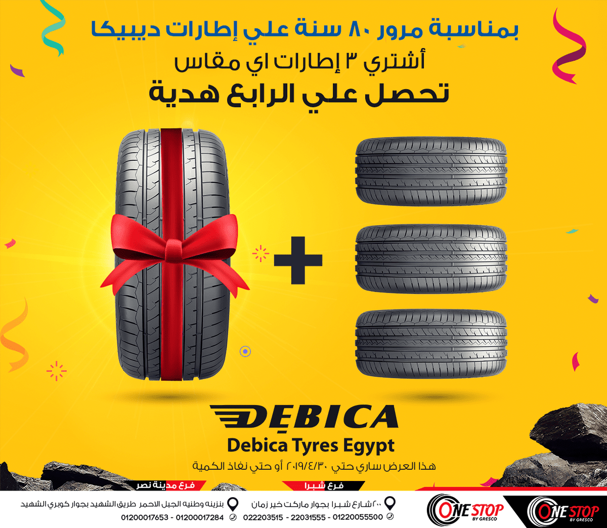 عرض خاص من ديبيكا مصر وجريسكو اقوي عرض اطارات في مصر بمناسبة مرور 80 سنة علي إطارات ديبيكا ايوة 80 سنة أشتري 3 إطارات اي مقاس وأحصل علي الرابع مجانا لمزيد من المعلومات اتصل علي مركز الخدمات العنوان1 : مدينة نصرمحطة بنزينه وطنيه الجبل الاحمر طريق الشهيد بجوار كوبري الشهيد : 01200017653 - 01200017284 العنوان 2: 200 ش شبرا مصر بجوار ماركت خير زمان : 01220055500-0222031555 Debica Tyres Egypt https://i.suar.me/oJYaY/l https://i.suar.me/8EgY2/l |