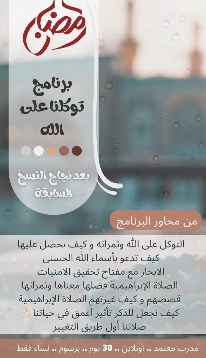 دوره ((توكلنا على الله)) في مجموعة نسائية تحفيزية و تذكيرات على مدار اليوم مع لفتات مهمة لكل منتظر للفرج و دعوات نبحر فيها مع اسماء الله وصفاته وختمات تملأ القلب سكينة وراحة على مدار ٣٠ يوما سيكون شهر رمضان مختلفا لنحقق امنياتنا و نتغير من الداخل قبل كل شي توكلنا على الله رحلة للروح قناة القصص https://t.me/twklnaa بوت المدربة على التلجرام @alhlmalgmell_bot رابط الواتساب https://wa.me/message/O4AKNFV5MIAQN1 https://i.suar.me/d1Wjp/l https://i.suar.me/jdW9v/l https://i.suar.me/875ay/l |